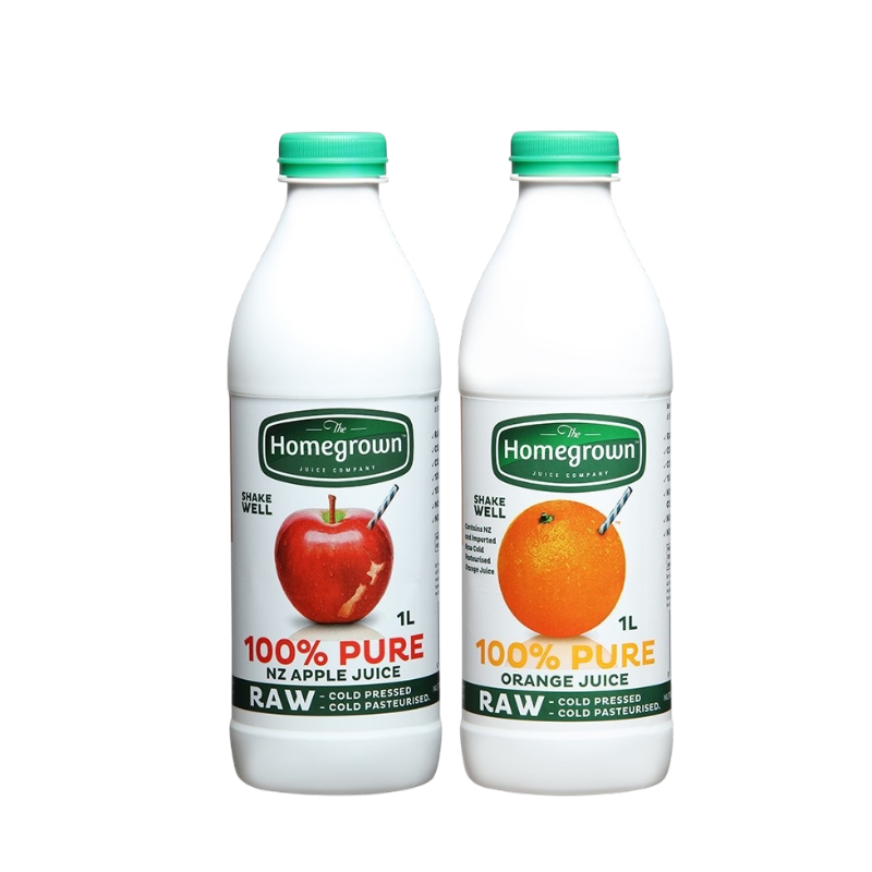 Raw cold pasteurised & cold pressed. 1L orange juice or apple juice